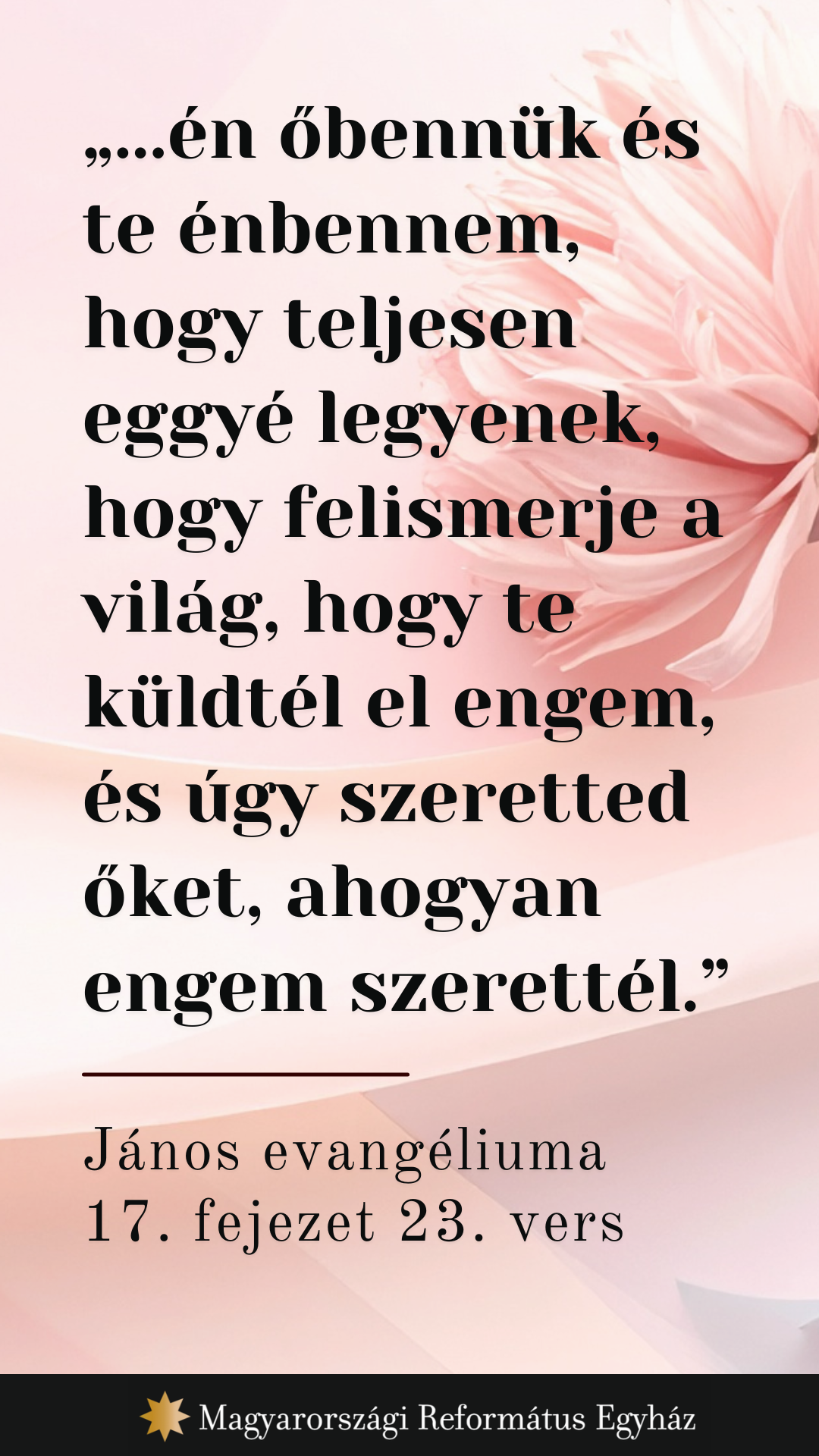 6 Kijelentettem a te nevedet az embereknek, akiket nekem adtál a világból. A tieid voltak, és nekem adtad őket, és ők megtartották a te igédet. 7 Most már tudják, hogy mindaz, amit nekem adtál, tőled van; 8 mert azokat a beszédeket, amelyeket nekem adtál, átadtam nekik, ők pedig befogadták azokat, és valóban felismerték, hogy tőled jöttem, és elhitték, hogy te küldtél el engem. 9 Én őértük könyörgök: nem a világért könyörgök, hanem azokért, akiket nekem adtál, mert a tieid, 10 és ami az enyém, az mind a tied, és ami a tied, az az enyém, és én megdicsőíttetem őbennük. 11 Többé nem vagyok a világban, de ők a világban vannak, én pedig tehozzád megyek. Szent Atyám, tartsd meg őket a te neved által, amelyet nekem adtál, hogy egyek legyenek, mint mi! 12 Amikor velük voltam, én megtartottam őket a te nevedben, amelyet nekem adtál, és megőriztem őket, és senki sem kárhozott el közülük, csak a kárhozat fia, hogy beteljesedjék az Írás. 13 Most pedig hozzád megyek, és ezeket elmondom a világban, hogy az én örömöm teljes legyen bennük. 14 Én nekik adtam igédet, és a világ gyűlölte őket, mert nem a világból valók, mint ahogy én sem vagyok a világból való. 15 Nem azt kérem, hogy vedd ki őket a világból, hanem hogy őrizd meg őket a gonosztól. 16 Nem a világból valók, mint ahogy én sem vagyok a világból való. 17 Szenteld meg őket az igazsággal: a te igéd igazság. 18 Ahogyan engem elküldtél a világba, én is elküldtem őket a világba: 19 én őértük odaszentelem magamat, hogy ők is megszentelődjenek az igazsággal.