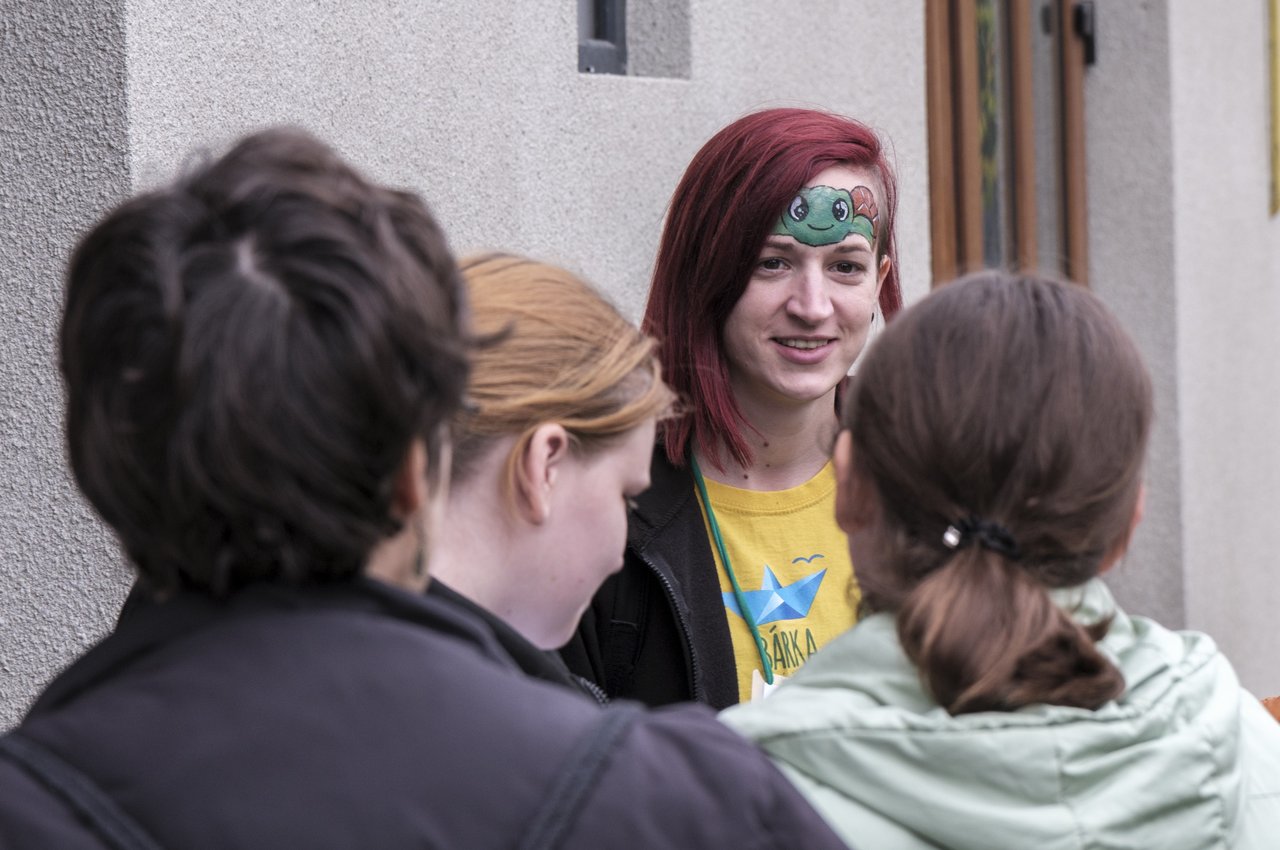Hórukk, hórukk, hórukk – eveznek a legkisebbek a délutáni programra. A négyéves, kiscicának maszkírozott Emili a többi mellett azt is elárulja, miről szól számára a tábor. – Nagyon sok zenét hallgatunk, meg énekelünk, táncolunk – majd elszalad a többiek után.