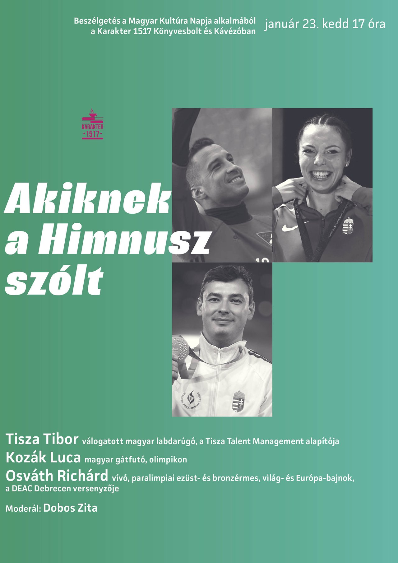 De vajon milyen érzés lehet a sok munka után a dobogóra állni és ezt hallgatni? Hogyan hat, miközben felcsendül a Himnusz? Esetleg még az esemény előtt álmodnak a sportolók ezzel az élménnyel? Hogyan válik erőforrássá ennek a képe? Ezekre és más, ezekhez hasonló kérdésekre keressük a választ vendégeinkkel a Karakter 1517 Könyvesbolt és Kávézóban tartott beszélgetésünkön.
