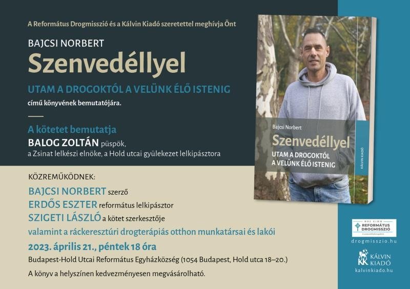 Könyvbemutatót tart a református drogmisszó és a Kálvin Kiadó április 21-én a Budapest-Hold Utcai Református Egyházközségben. Bajcsi Norbert Szenvedéllyel. Utam a drogoktól a velünk élő Istenig című könyvét Balog Zoltán püspök, a Zsinat lelkészi elnöke, a Hold utcai gyülekezet lelkipásztora mutatja be.