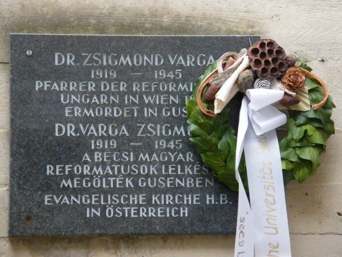 A koszorúzás után Karl Schwarz, a bécsi evangélikus teológia emeritus egyháztörténész-professzora köszöntötte a gyülekezetet, ahol annak idején ifj. Varga Zsigmond ösztöndíjas diák volt. A jubiláló Collegium Hungaricum nevében Bertényi Iván szólt a gyülekezethez.