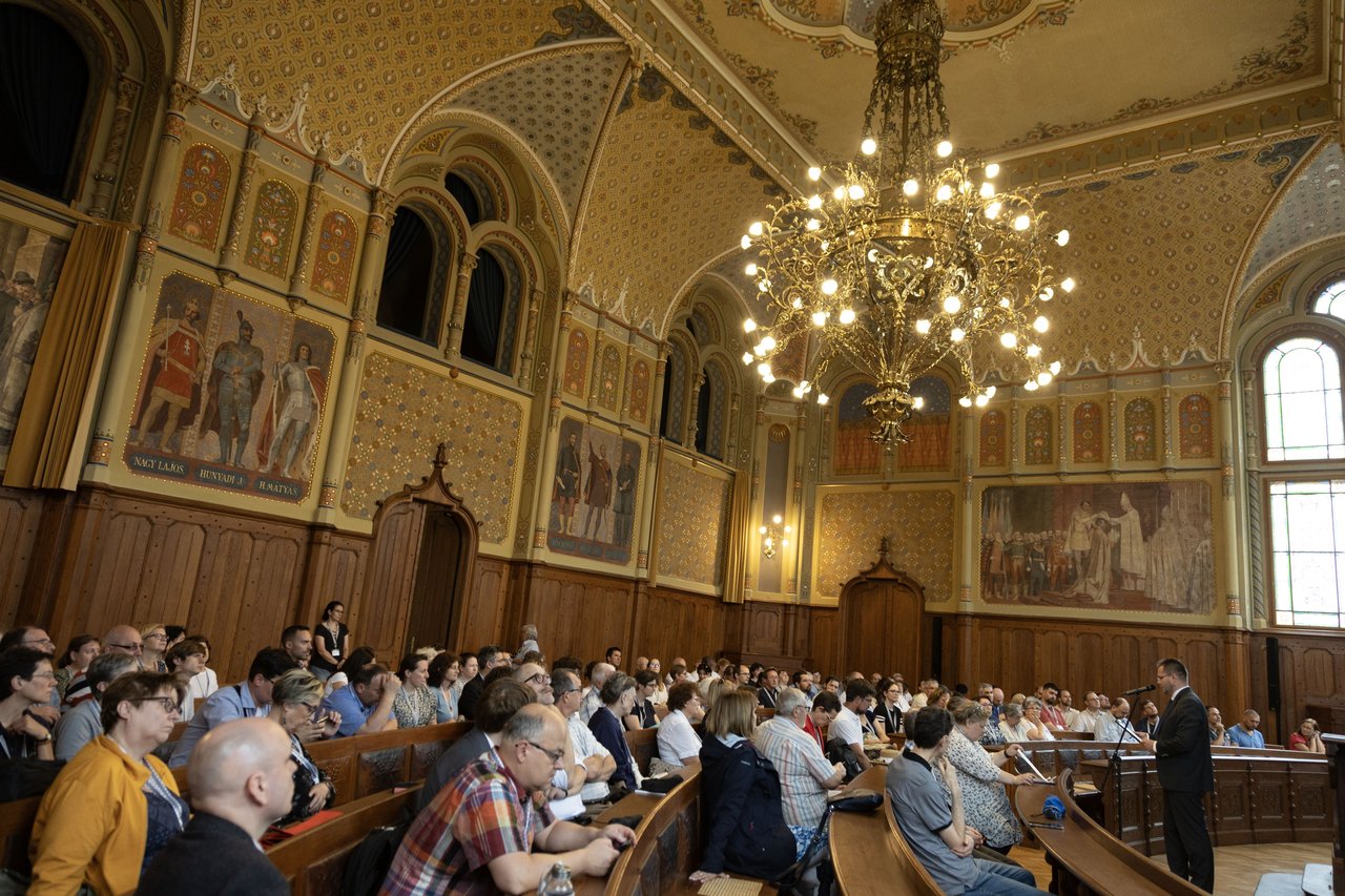 Az ebéd után a program a felújított kecskeméti városházán folytatódik, ahol először Fekete Gábor képviselő köszönti az egybegyűlteket, majd a szecessziós épületet és annak tanácstermét Kiss Attila építész mutatja be röviden. Még előtte összetalálkozom a Dunántúli Református Egyházkerület Tudományos Gyűjteményei Köntös László gyűjteményi igazgató által vezetett delegációjával is, akik úgy érzik, mintha hazajöttek volna. – A református közegbe – pontosít Halászné Kapcsándi Szilvia, a Pannonia Reformata Múzeum vezetője. Elmondása szerint várják a harmadik napot, amikor megoszthatják a tapasztalataikat, és beszámolhatnak arról a sok fejlesztésről és változásról, amelyek az elmúlt egy évtizedben történtek náluk.