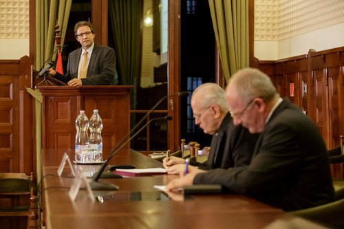 Erdő Péter katolikus bíboros és Bogárdi Szabó István református püspök tartott előadást a reformációról október 17-én Budapesten, a Károli Gáspár Református Egyetem Hittudományi Karán. A teológia két kiváló, tudós művelője – ahogy Balla Péter rektor nevezte őket – az 500 évvel ezelőtti történések előzményeiről, a keresztyén felekezetek közötti párbeszéd elmúlt évszázadairól és mai helyzetéről is elmondta véleményét.