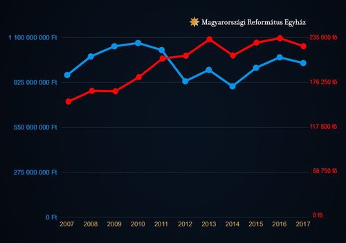 Némileg másképp alakultak az egyházunknak felajánlott összegek az elmúlt évtizedben: a kétezres évek második felében tapasztalt növekedés 2010-ben tetőzött: öt év alatt 600 millióról egymilliárd forintra nőtt az 1%-okból befolyó támogatás egyházunkban. Azóta hullámzó a támogatások végösszege, tavaly 944 millió forinton állt. Az elmúlt évek csökkenése mögött valószínűleg az adózási szabályok változásai, a személyi jövedelemadó fokozatos csökkentése és az adókedvezmények körének növekedése állhatnak.