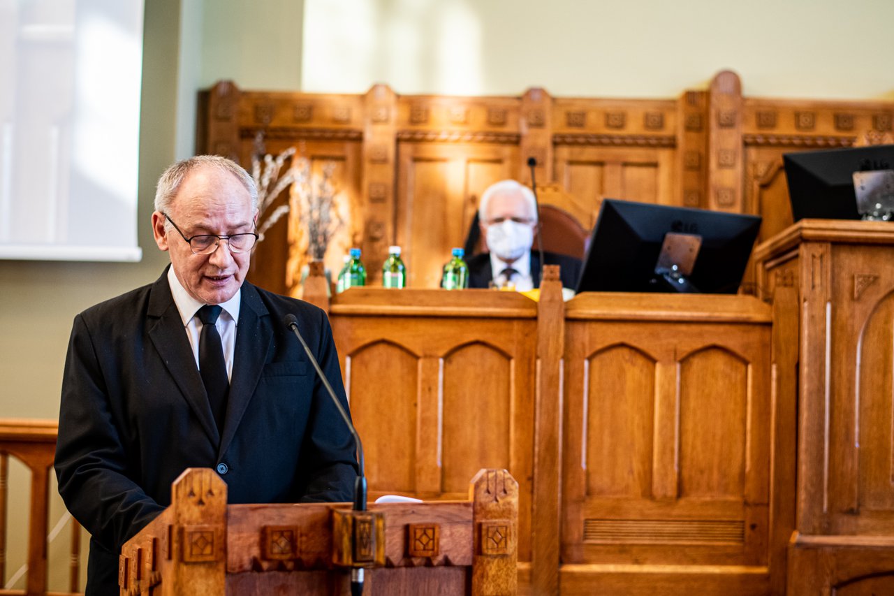 Dr. István Szabó Bogárdi, outgoing Bishop of the Danubian Reformed Chruch Disctrict (Budapest) and Ministerial President of the Synod of the Reformed Church in Hungary opened the last meeting of the recent 6 years legistlative periode, the closing session of the so called 14th Synod Cycle. Rev. Szabó has been serving as Bishop of his Church District since 2013 and was elected as President of RCH in 2015. He has served 3 terms, altogether 18 years as Bishop. Although his term will end only at the end of the year, members of the Synod, senior officials and collegues have officially thanked and celebrated his dedicated service as a preacher of the Gospel, professor of theology and especially as the head of the church officially at the closing session today.