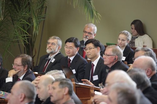 Another important step taken during the Synod session was the invitation of 11 international delegates from partner churches of the RCH. The challenges of today's church are not unique to Hungary they are global issues. The Synod welcomed representatives from its partner churches to share experiences and learn from the example of other Reformed institutions. Thomas Wipf, former President of the Community of Protestant Churches in Europe and current Moderator of the European Council of Religious Leaders, gave a speech relating his experiences in Switzerland. "We can only preserve our identity if we look to the future," he said. Wipf described a sociological study similar to the CRC's proposed study that delved into the challenges affecting churches in Switzerland. He explained that eight trends and processes were found, and described several of them to the Synod. Wipf concluded with this, "It's not about administering a legacy – it would be a dead thing. It's the here and now that we must focus on. God is the creator and as he is creative, church structures must also change. Tradition does not mean the keeping of ashes but the passing down of flames."