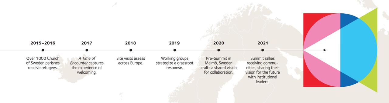 The gathering in Malmö, hosted by the Archbishop Anjte Jackelén, called together some 70 participants, all who have an urgent stake in one of the most pressing tasks of our time – the reception and accompaniment of ‘people on the move’ in an inclusive society. All participants were necessitated to become “stakeholders” in the future search and were actively involved in every aspect of the meeting. Sharing experience, convictions and insights shaped the discussions in groups and in plenary. Careful listening, creativity, mutual trust and accountability, sharing leadership and responsibility made the meeting unique and guaranteed that the outcome was not pre-determined.