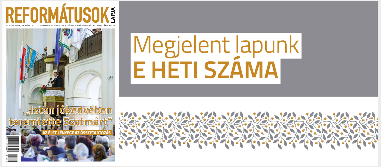 A Reformátusok Lapja szeptember 19-ei számában is megtalálják a megszokott és kedvelt rovatokat, lelki írásokat, igemagyarázatokat. Az újság előfizethető a Reformátusok Lapja Kiadóhivatalában: 1113 Budapest, Tas vezér utca 13., +36 30/396-8208, kiado@reflap.hu