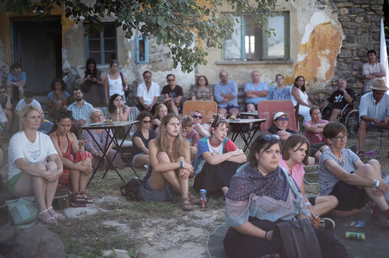 Ahogy a beszélgetés végére érünk, lassan kezdődik a koncert, a Holdalanap muzsikája betölti a kis udvart. Számos ismerős és ismeretlen arc tölti meg a székeket, padokat, a földön a pokrócokat, a szél is kicsit elül, mintha csak a koncert kedvéért csillapodna. Csak még egy zeneszám, csak még egy beszélgetés, csak még egy szörp.