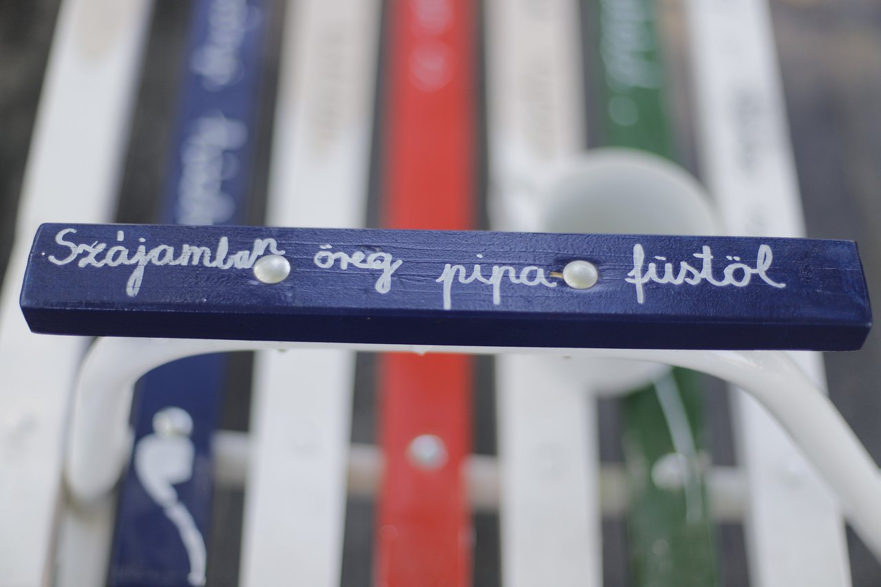 Kosztolányi Boldog szomorú dalának egyik sora a Pipás padon