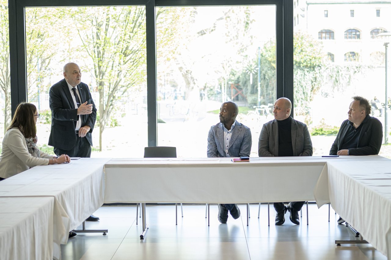 Steinbach József köszönti Christian Cito Cirhigirit, Juhász Péter Gergőt és Bankus Istvánt