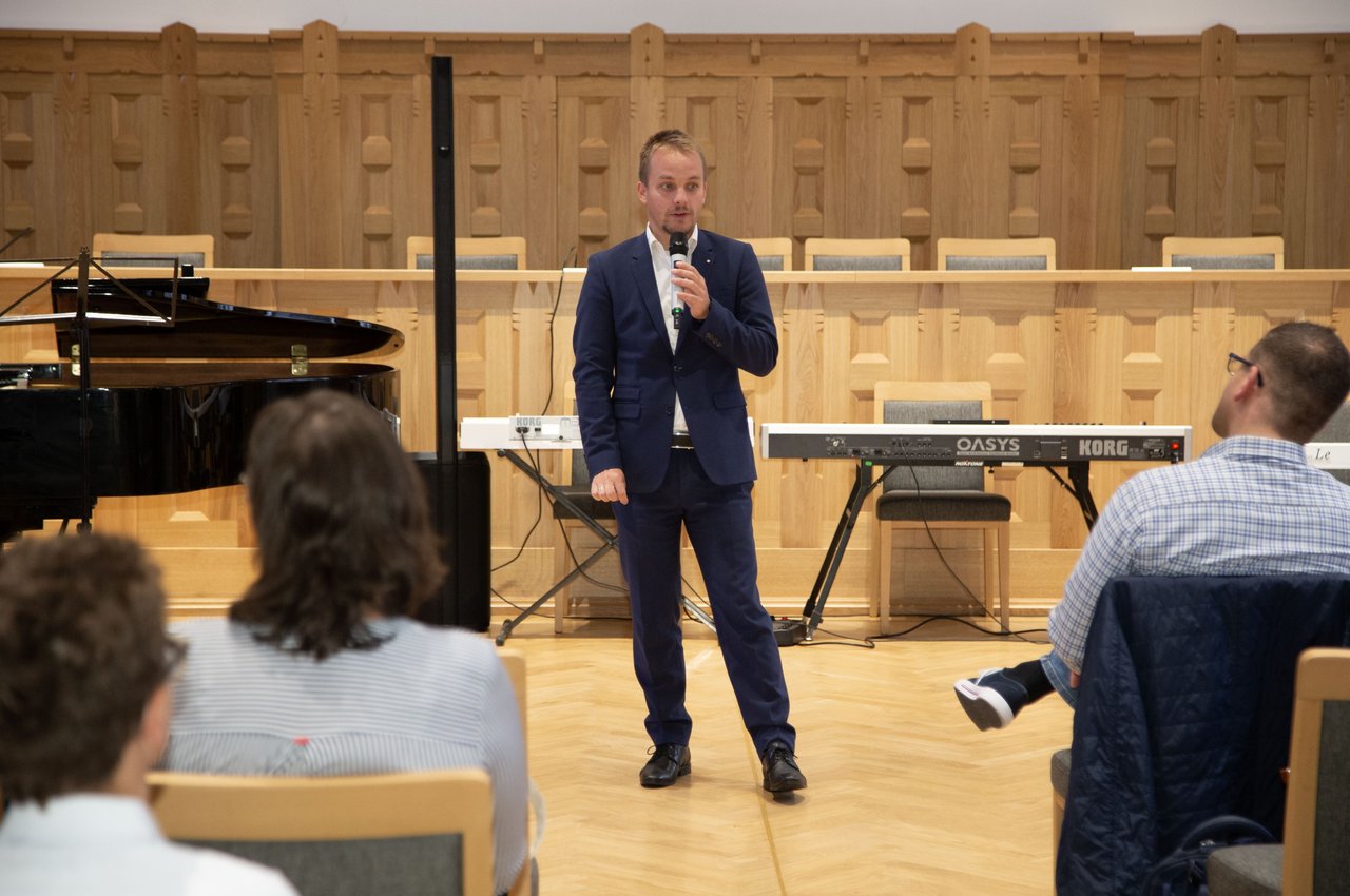 Szombat délután következett a fiatal művészek által talán leginkább várt esemény: a Ráday Ház reprezentatív dísztermében adtak koncertet az iskolák küldöttségei. A kiváló akusztikai és technikai adottságokkal rendelkező teremben összegyűlt hallgatóság őszintén rácsodálkozott a református művészeti iskolák által kínált képzések sokféleségére. Ezt a sokféleséget emelték ki köszöntőjükben Kovács Zalán, az Egressy Béni Református Művészeti Szakgimnázium igazgatója, Zila Gábor, az RKK ügyvezetője és Bódiss Tamás, egyházunk zenei igazgatója, biztatva a résztvevőket, hogy mindig legyenek hálásak az Úristennek a művészet révén az életükben jelenlévő többletért.