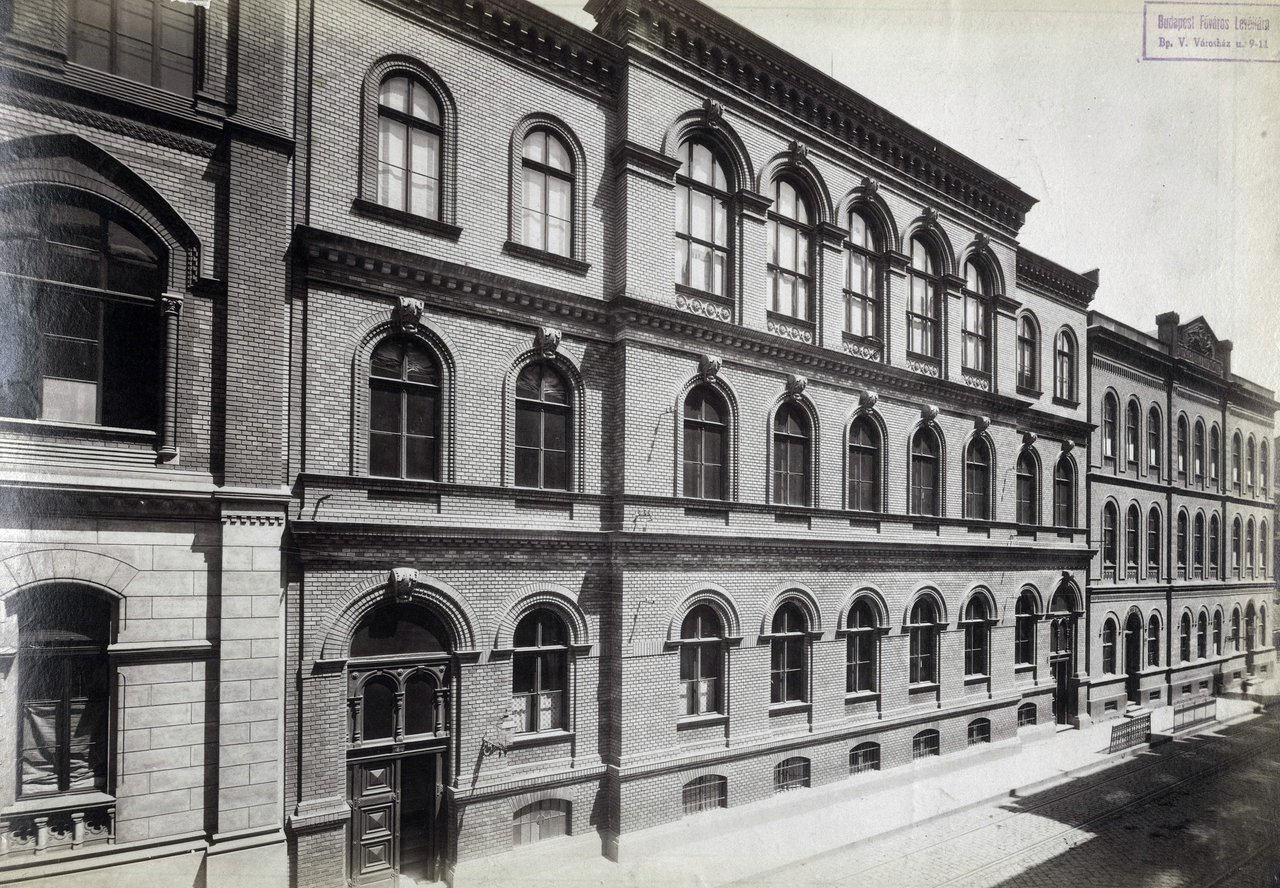 Lónyay utca, szemben a 4/c, a Református Gimnázium, jobbra, a 6-8. az elemi iskola épülete (ma Lónyay utca 4/c - 8., Szent-Györgyi Albert Általános Iskola és Gimnázium). A felvétel 1890. után készült.