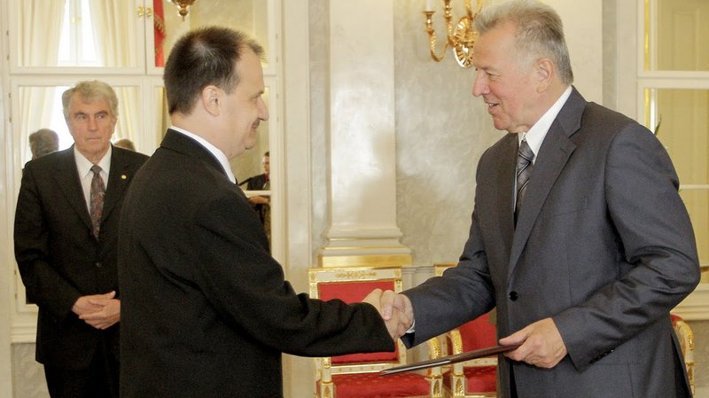 Schmitt Pál átadja a 2014-og szóló kinevezést tanúsító dokumentumot