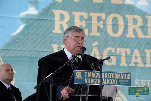 „A reformátor, akinek a mai naptól fogva szobor áll a Vártemplom előtt, azt fogalmazta meg, hogy szívedet, mint égő áldozatot neked ajánlom, Uram! De csak az a szív képes befogadni, amely ki is tud tárulni. Ez a legnagyobb élmény az összejövetelen“ – hangzott el. A püspök kifejtette, a magyar református világtalálkozónak az a nagy kérdése, hogy be tudjuk-e fogadni egymást a nagy szorosságok ideje után, most, hogy kitárhatjuk egymásnak szívünket.